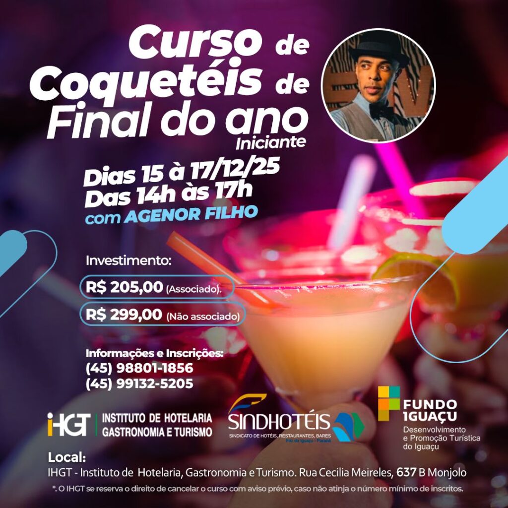 Participe do nosso Curso de Coquetéis de Final de Ano para Iniciantes com o premiado mixologista Agenor Filho! Uma oportunidade única para você que quer aprender a criar drinks clássicos e autorais para celebrar em grande estilo.