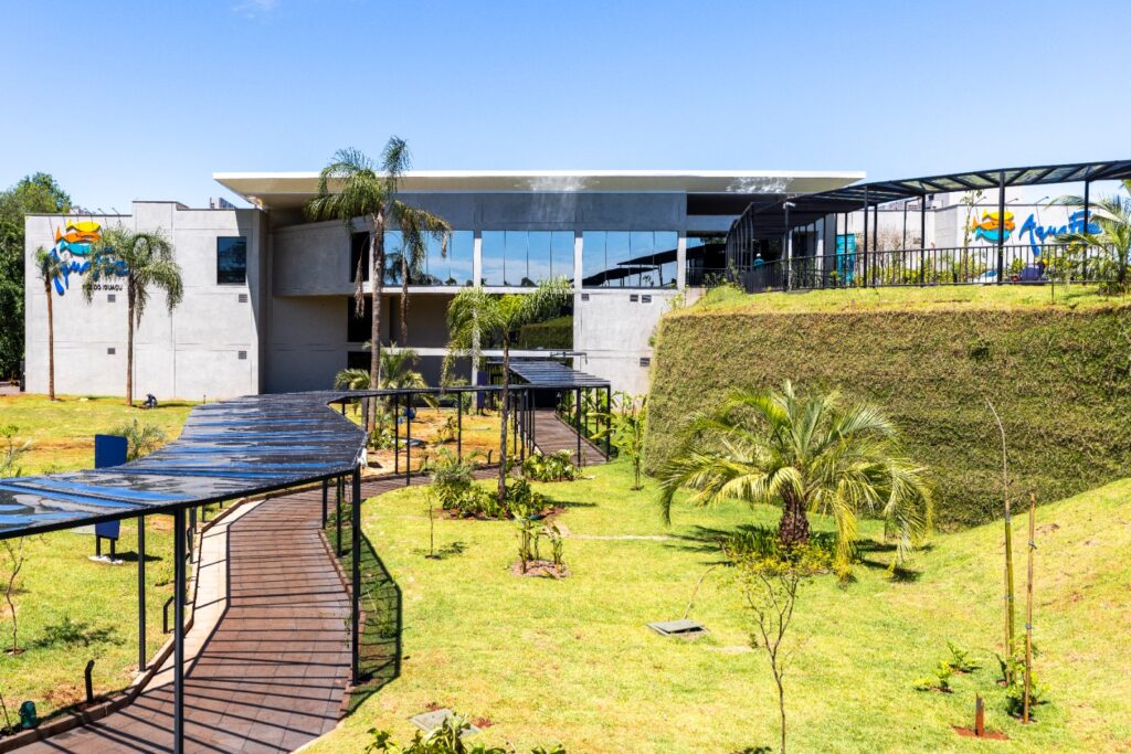 O percurso de cerca de 750 metros passa por tanques cenográficos, passarela, túnel e mirantes que recriam ambientes dos rios Iguaçu e Paraná, da bacia amazônica e do oceano, oferecendo uma experiência imersiva e educativa para todas as idades.