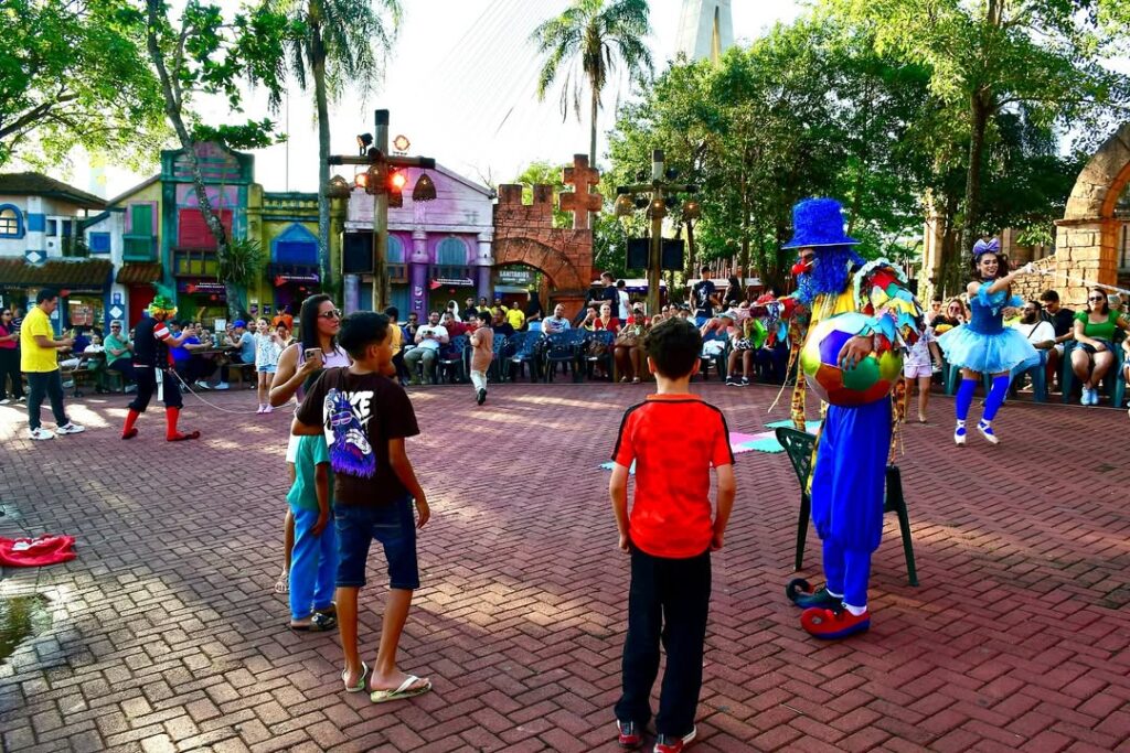 Após as brincadeiras, a programação continua com apresentações culturais e o tradicional Show das Três Fronteiras, espetáculo que celebra a rica história e diversidade cultural da região formada por Brasil, Argentina e Paraguai, a partir das 18h30.