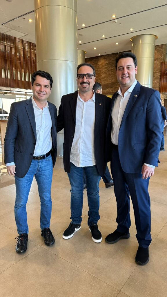 Nesta quarta-feira, 10 de setembro, o empresário Deoclecio Duarte, pré-candidato a deputado estadual pelo PL, reuniu-se em Foz do Iguaçu com o governador Ratinho Junior (PSD) e o presidente da Assembleia Legislativa, Alexandre Curi (PSD). O diálogo aconteceu durante a abertura do 83º Encontro Nacional dos Detrans, evento em que o governador anunciou investimentos de R$ 100 milhões para sinalização viária nos municípios do Paraná. Na oportunidade, Deoclecio Duarte, Ratinho e Alexandre Curi trataram sobre os entendimentos políticos visando as eleições de 2026.