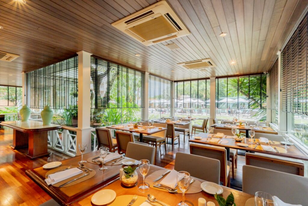 O cardápio exalta a diversidade de sabores locais e internacionais, com entradas de pães artesanais, pastas, queijos, saladas tropicais e estações de carnes (picanha, fraldinha, copa lombo) e frutos do mar, como ceviches, nigiris selados, uramakis com toques cítricos, salmão grelhado com diferentes molhos, além de moqueca de peixe branco e tilápia da região.