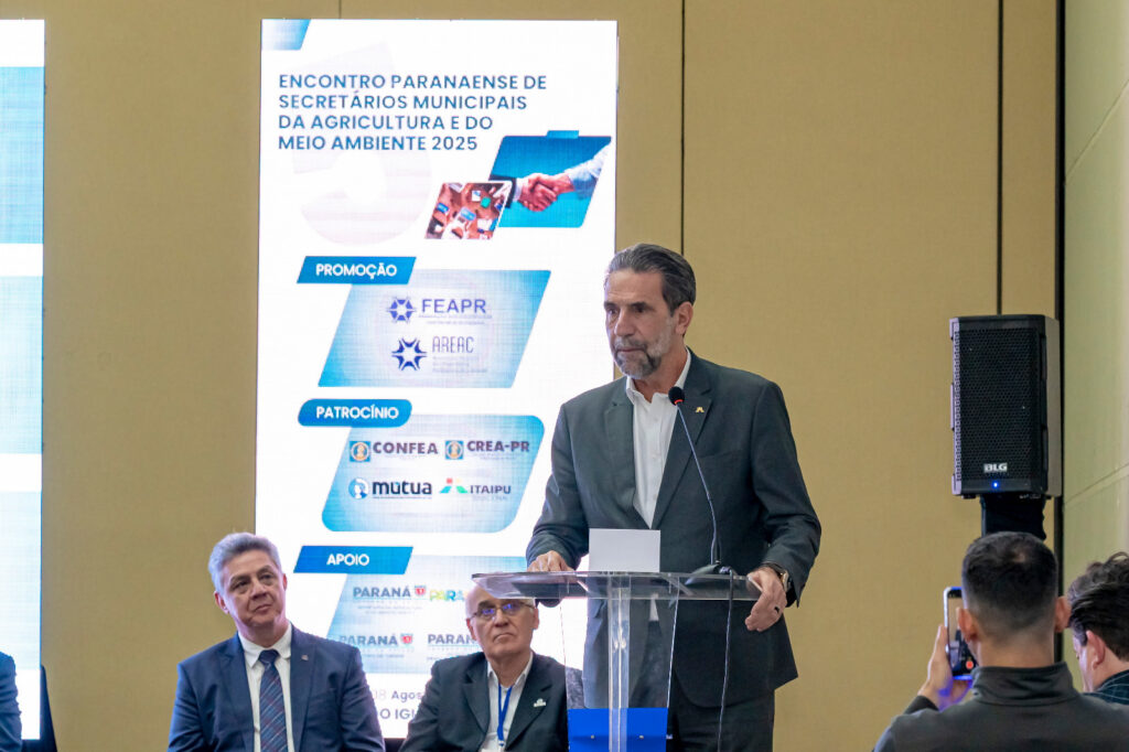 O diretor-geral brasileiro da Itaipu Binacional, Enio Verri, participou terça-feira (6) da abertura do Encontro Paranaense de Secretários Municipais da Agricultura e do Meio Ambiente 2025, em Foz do Iguaçu (PR). O evento é organizado pela Federação dos Engenheiros Agrônomos do Paraná (FEAPR), com apoio da Itaipu, entre outras instituições.