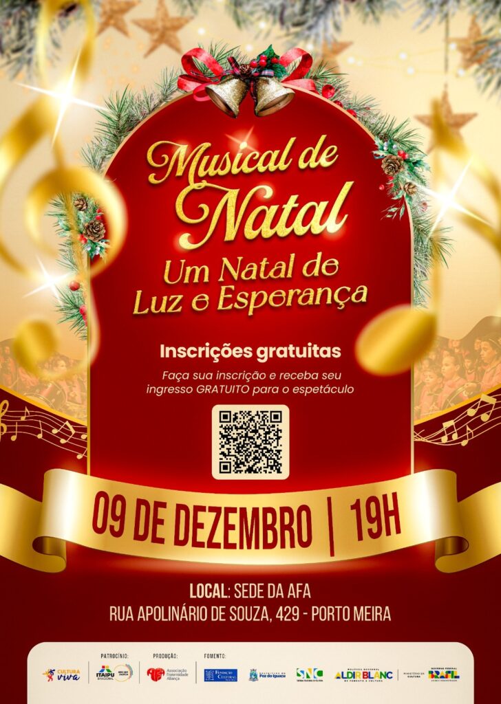 A realização do espetáculo é resultado de projeto aprovado pela Fundação Cultural de Foz do Iguaçu, com recursos da Política Nacional Aldir Blanc-PNAB, Ministério da Cultura e Governo Federal. Além disso, tanto o musical de Natal quanto o espetáculo “Foz – Uma História para Cantar”, apresentado em junho de 2025, tiveram o importante apoio concedido por meio do Termo de Patrocínio da Itaipu Binacional.