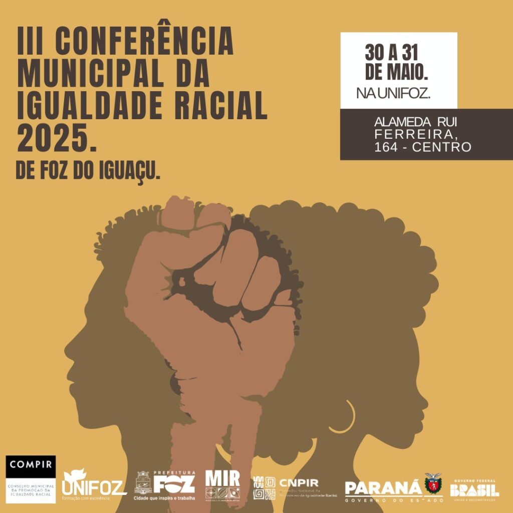 Foz do Iguaçu promove, nos dias 30 e 31 de maio, a III Conferência Municipal de Promoção da Igualdade Racial, com o tema “Reconstruindo o Brasil: o combate ao racismo e a promoção da igualdade como prioridade”. O evento será na Unifoz – Centro Universitário de Foz do Iguaçu, na Avenida Araucária, nº 280 – Vila A.