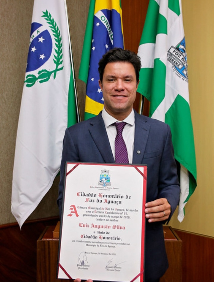 A Câmara Municipal de Foz do Iguaçu entregou o título de Cidadão Honorário do município ao secretário estadual Guto Silva, em reconhecimento aos serviços prestados e à contribuição para o desenvolvimento da cidade e da região.
