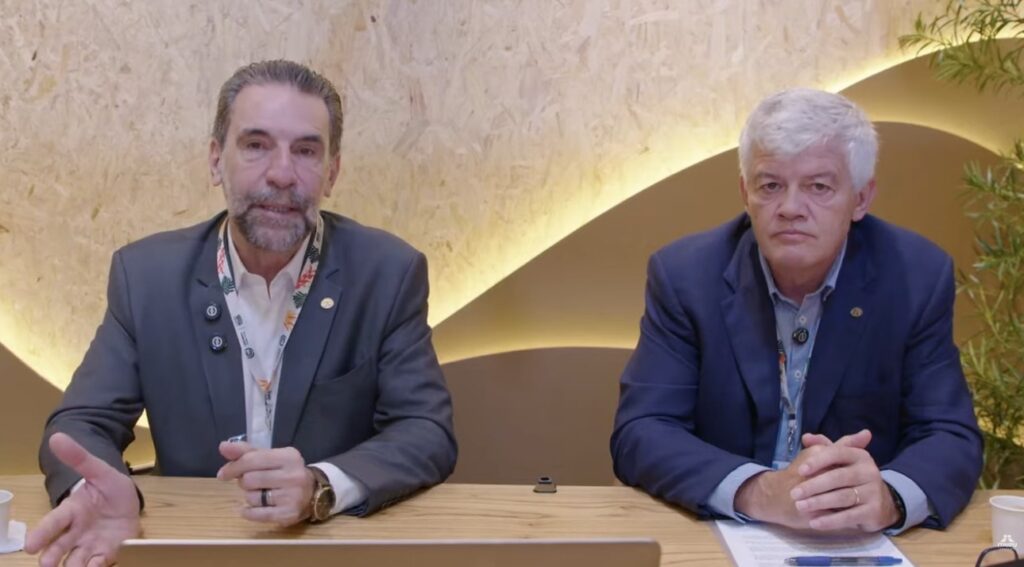 Enio Verri e Carlos Carboni, diretores da Itaipu, no lançamento do edital. Imagem: captura de tela.