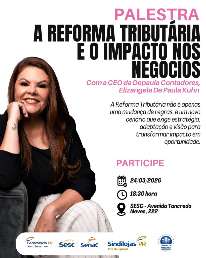 A Câmara da Mulher Empreendedora e Gestora de Negócios/CMEG e o Sindlojas promovem uma palestra estratégica para auxiliar o setor produtivo de Foz do Iguaçu a enfrentar os novos desafios da Reforma Tributária, nesta terça-feira (24), às 18h30. Com o cenário empresarial em plena transformação, 2026 é o ano decisivo para que empreendedores iniciem as adaptações necessárias e evitem prejuízos financeiros.