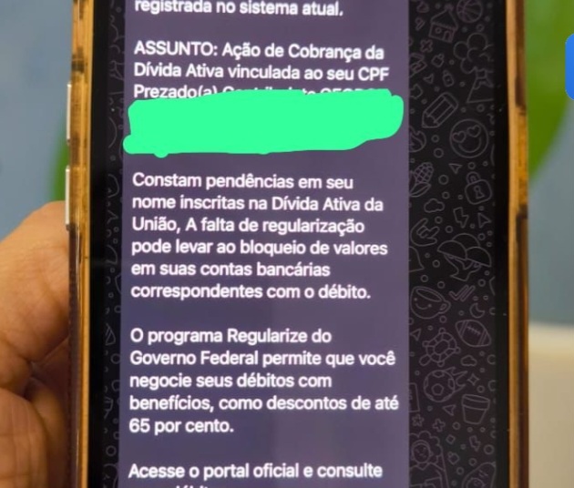A Receita Federal e a PGFN não enviam cobranças por links desconhecidos nem solicitam dados pessoais por mensagens. O objetivo do golpe é roubar informações e causar prejuízo financeiro.
