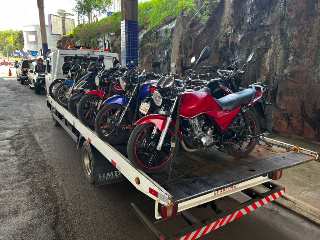 • 5 guinchos totalmente carregados com motocicletas encaminhados ao pátio.