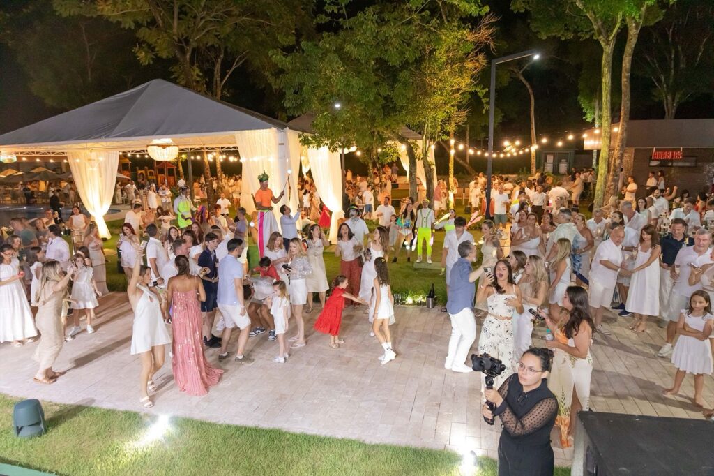 A festa será embalada por uma banda ao vivo e um DJ set, garantindo a animação durante toda a noite. Um show circense trará um toque de magia à celebração, enquanto o open bar servirá whisky Chivas 12 anos, espumante DoubleTree, Heineken e drinks tropicais. Para a comodidade das famílias, o evento contará com recreação infantil.