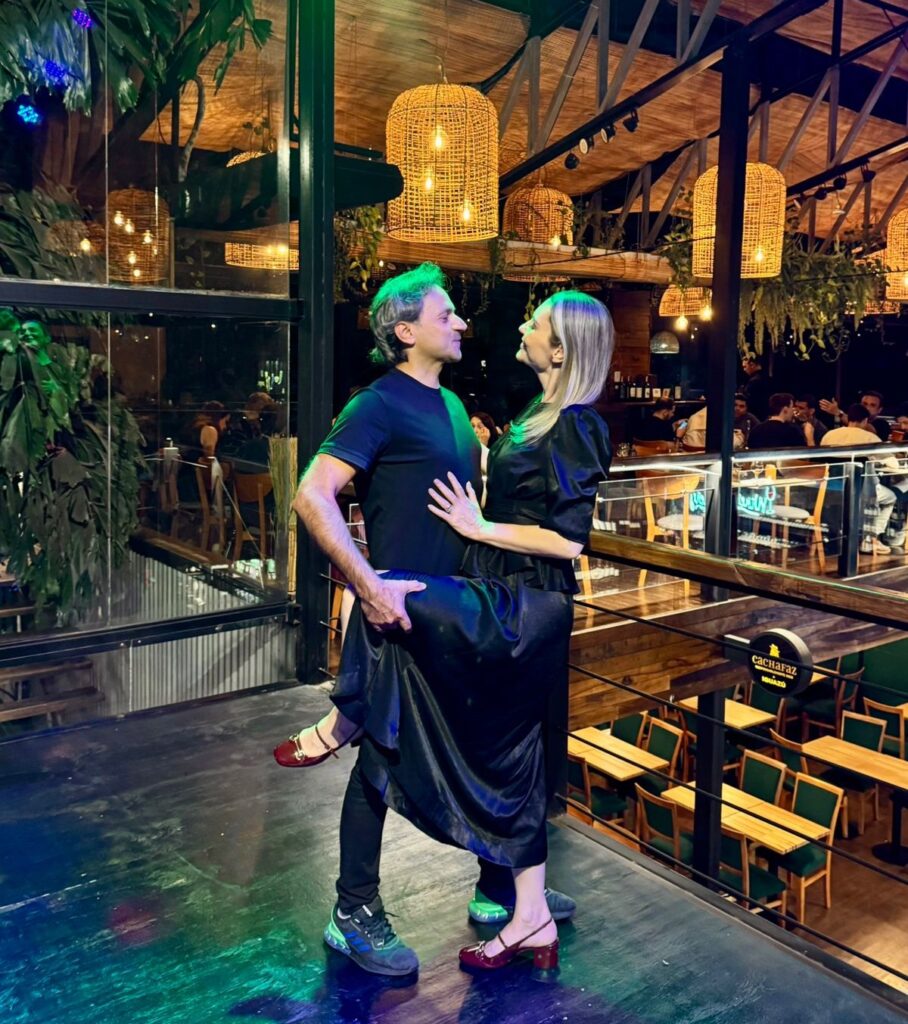 O tango nasceu nos portos de Buenos Aires e Montevidéu no fim do século XIX, carregado de dramaticidade, ritmo sincopado e paixão. No Yabuticaba Mercadito de La Selva, essa dança emblemática ganha vida em meio à natureza preservada, transformando um simples jantar em um espetáculo que une música, cultura e gastronomia argentina. A jornalista Abilene Rodrigues e o marido, Samuel Felix, escolheram o romantismo do tango e o aconchego do restaurante para celebrar os 26 anos de união, contados desde o dia em que se conheceram.