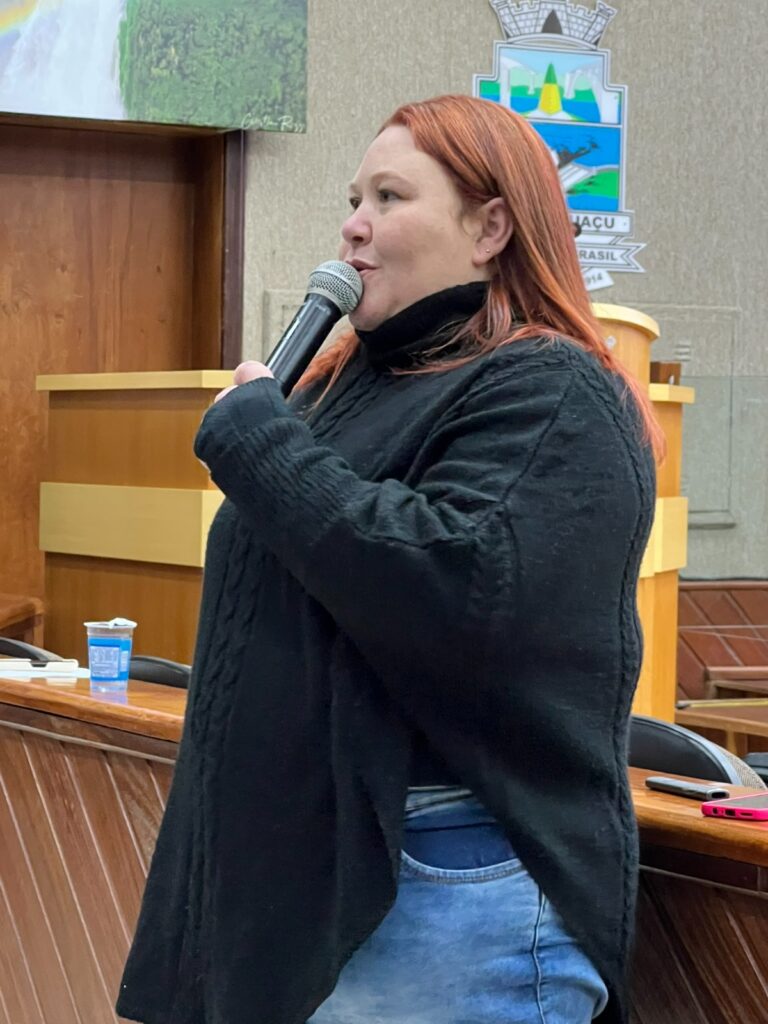 A professora Viviane Dotto, pres. do Sinprefi, assina Nota de Repúdio emitida pelo sindicato contra atos dos vereadores e da Secretaria de Educação. (Foto Izabelle Ferrari)