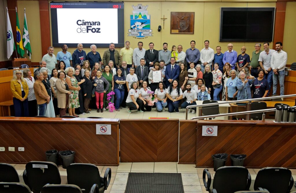 A Câmara de Foz foi palco de uma sessão solene na manhã desta terça-feira (19), 9h. A Terezinha Zagotta Machado Pinezi recebeu o Título de Cidadã Honorária pelo poder Legislativo. O prêmio foi concedido pelo Vereador Cabo Cassol (PL), em reconhecimento ao seu legado educacional e a ajuda de pessoas com diabete. A solenidade, abrilhantada pela banda do 34º BIMEC foi conduzida pelo Presidente do Legislativo, vereador Paulo Debrito (PL).