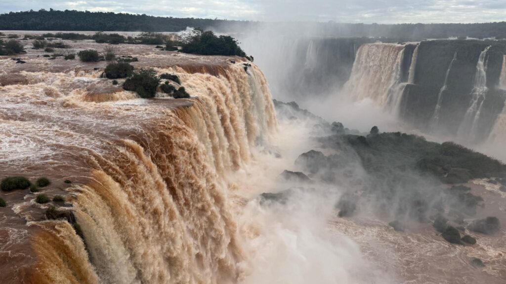 De acordo com monitoramento da Companhia Paranaense de Energia (Copel), o número vem crescendo desde o dia 24, última terça-feira, quanto a vazão ultrapassou a média de 1,5 milhão de litros d’água por segundo. As Cataratas do Iguaçu estão localizadas no extremo-oeste do Paraná, no Parque Nacional do Iguaçu, na fronteira entre a Argentina e o Brasil. O aumento da vazão é causado pelas chuvas intensas que atingem o estado.