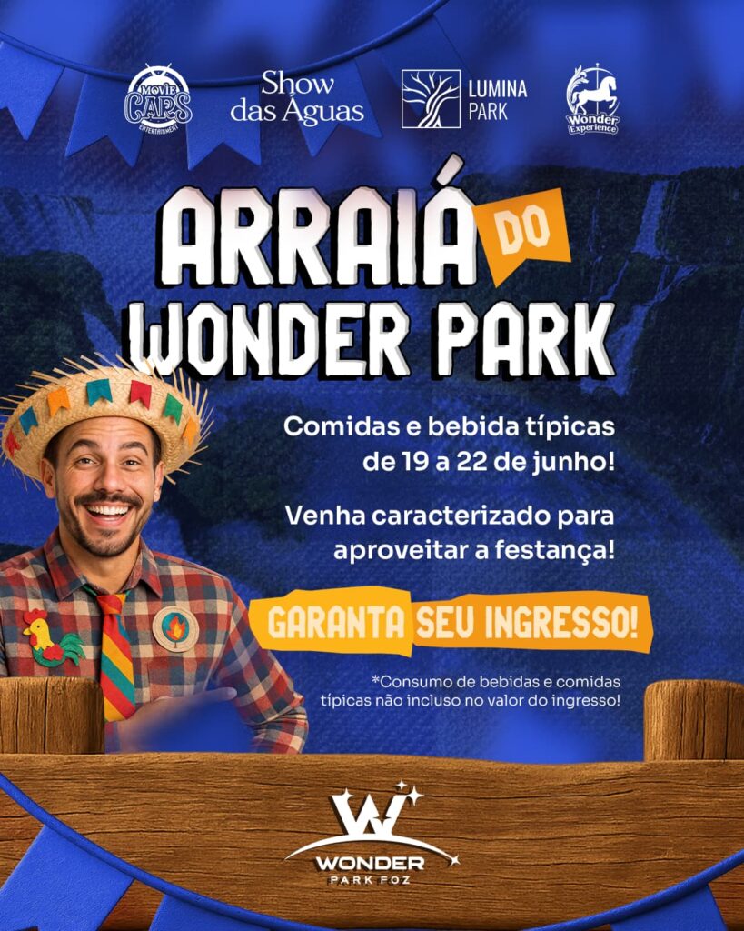 O Wonder Park Foz vai entrar no clima das festas juninas com um evento especial no sábado do feriadão prolongado de Corpus Christi: o Arraiá do Wonder Park Foz, marcado para os dias 19, 20, 21 e 22 de junho, das 18h às 22h. Em um ambiente temático, com músicas típicas, luzes, bandeirolas e trajes caipiras, a festa será uma celebração cheia de sabor, tradição e alegria.